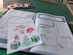 Mais en l’ouvrant, je découvre une carte. Celle de Naël, qui me présentait ses vœux : un travail en anglais, coloré et soigné, dans lequel il exprimait simplement que j’étais son enseignant préféré.